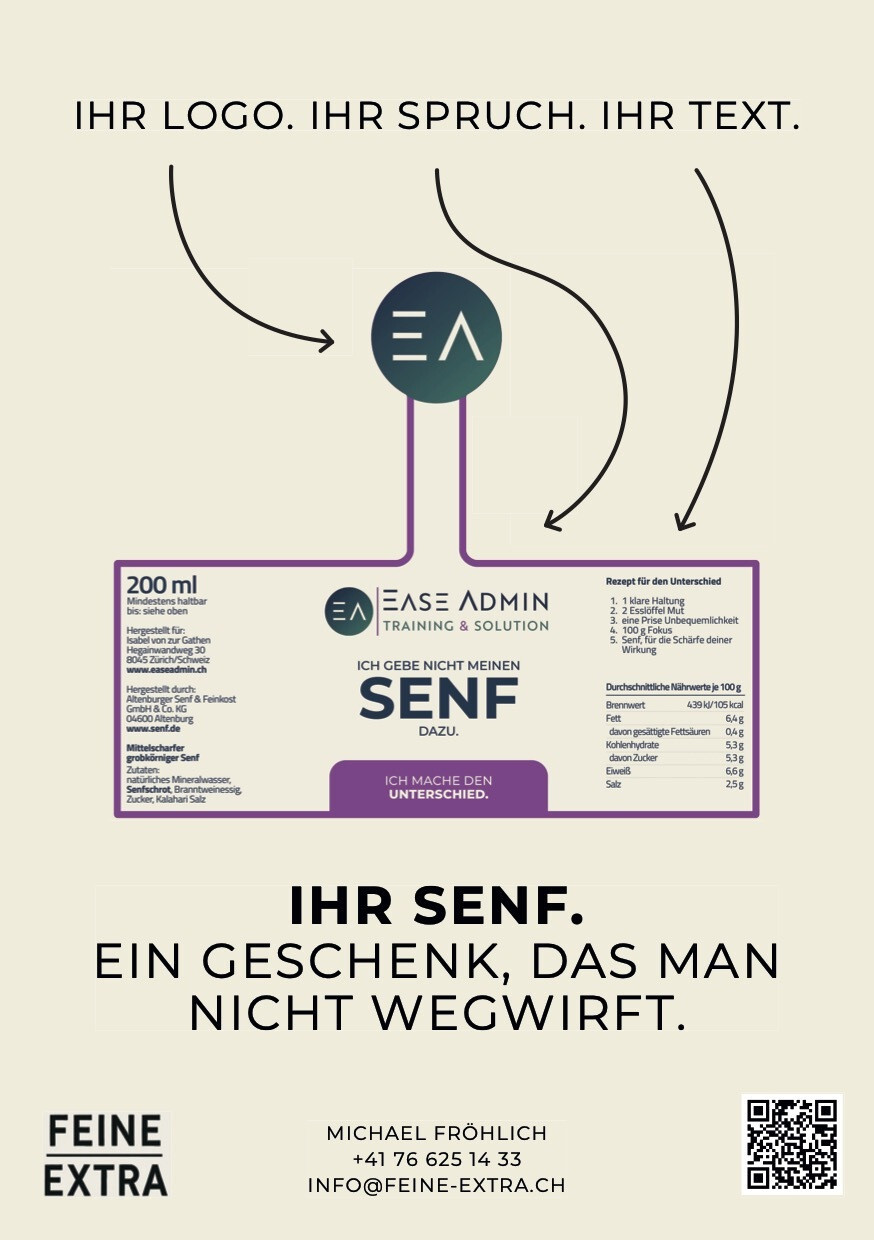 Ob als Kundengeschenk, Wertschätzung für Mitarbeitende, Give-away bei Events oder kleine Aufmerksamkeit für Geschäftspartner: Ein personalisiertes Senfglas bleibt im Gedächtnis – und auf dem Tisch.